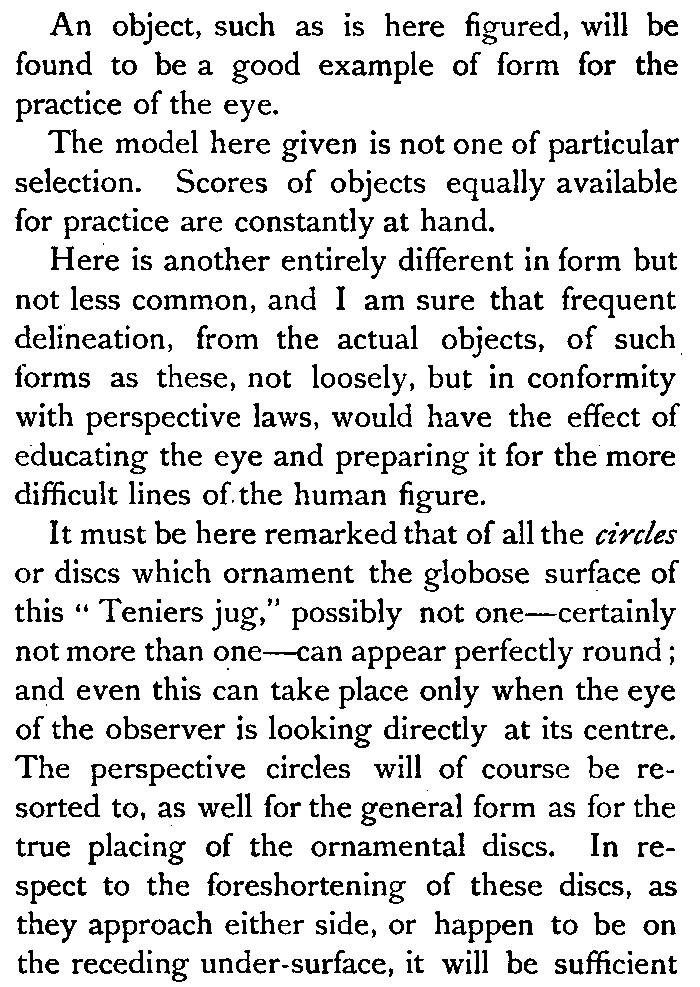Here is another entirely different in form but not less common, and I am sure that frequent delineation, from the actual objects, of such forms as these, not loosely, but in conformity with perspective laws, would have the effect of educating the eye and preparing it for the more difficult lines of. the human figure.