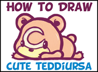 If you like Teddiursa from Pokemon, then you are going to love this drawing tutorial. Today we will show you how to draw this popular Pokemon character in simple-to-follow steps. If you want to draw a teddy bear, you can just take the moon shape off his forehead and you will have an adorable teddy-bear figure.