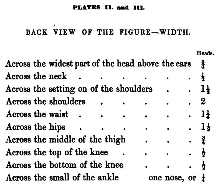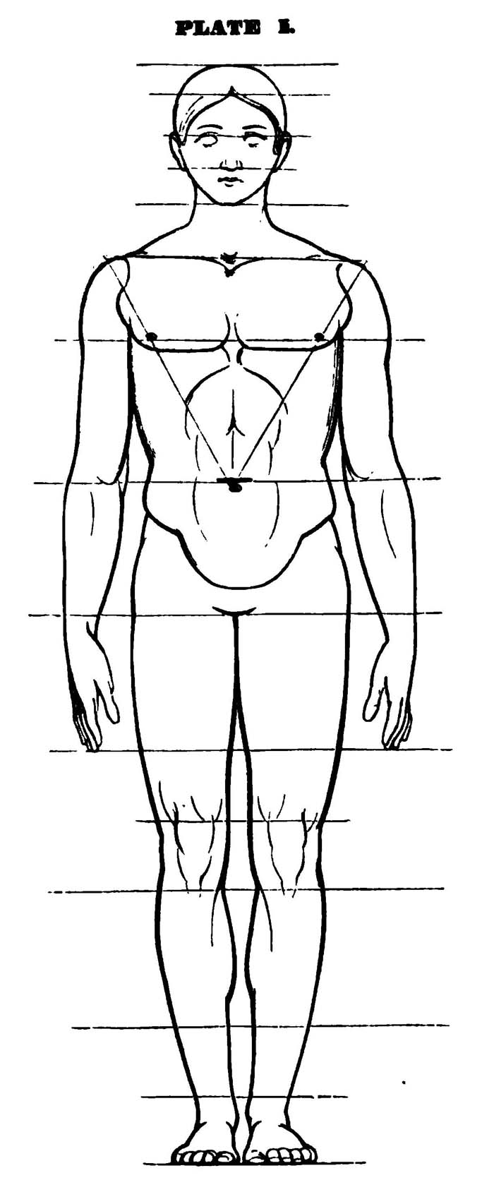 The height of the female figure may be reduced into the same number of divisions as those of the male figure. The widths of the different parts will be found to vary considerably.