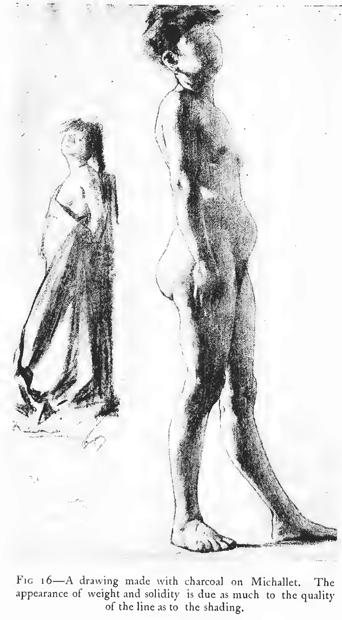 FIG. 16—A drawing made with charcoal on Michallet. The appearance of weight and solidity is due as much to the quality of the line as to the shading.