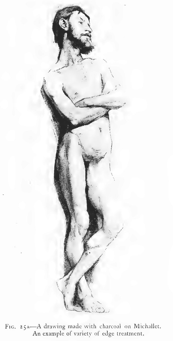 Fin. 25A—A drawing made with charcoal on Michallet. An example of variety of edge treatment. |