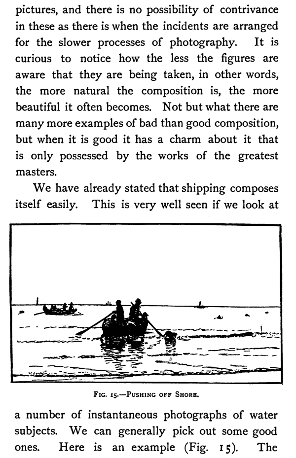 We have already stated that shipping composes itself easily. This is very well seen if we look at a number of instantaneous photographs of water subjects. We can generally pick out some good ones.