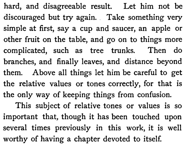 This subject of relative tones or values is so important that, though it has been touched upon several times previously in this work, it is well worthy of having a chapter devoted to itself.