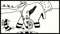 How To Draw an Anteater in a 6 step by step lesson, follow easy steps until you have a completed drawing of an Anteater.